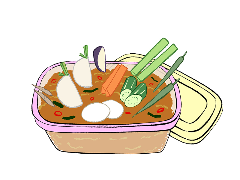 作品No.w260 味噌汁に大豆を混ぜる,イラスト