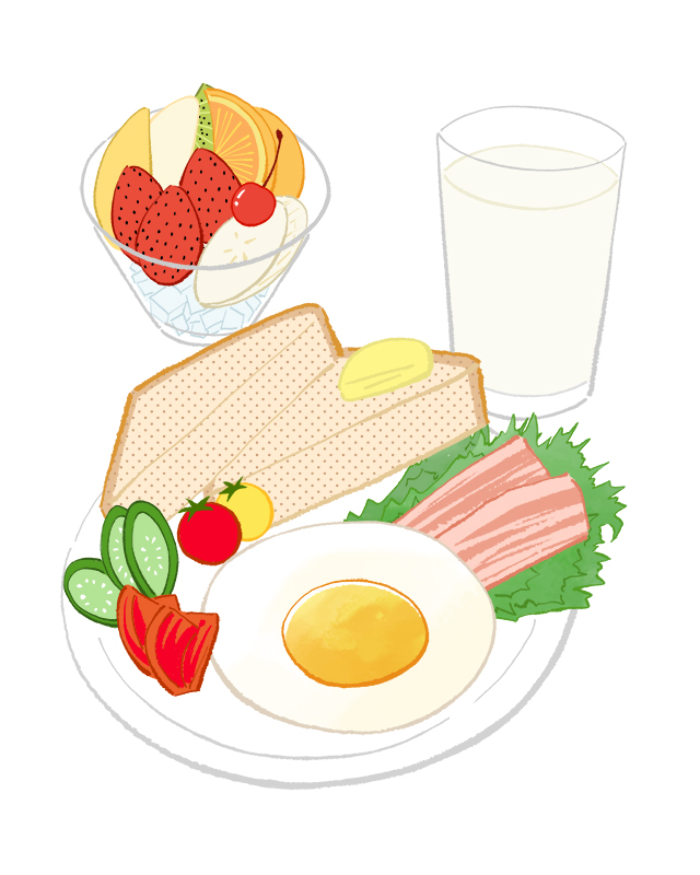 作品No.w227 朝食,目玉焼き,トースト,デザート,イラスト
