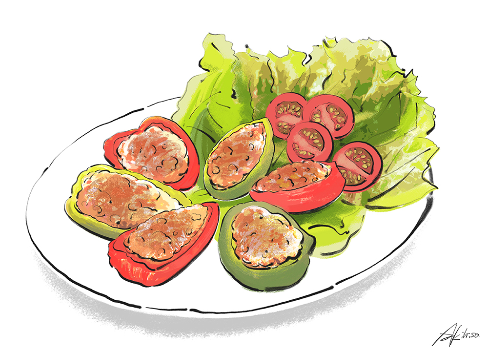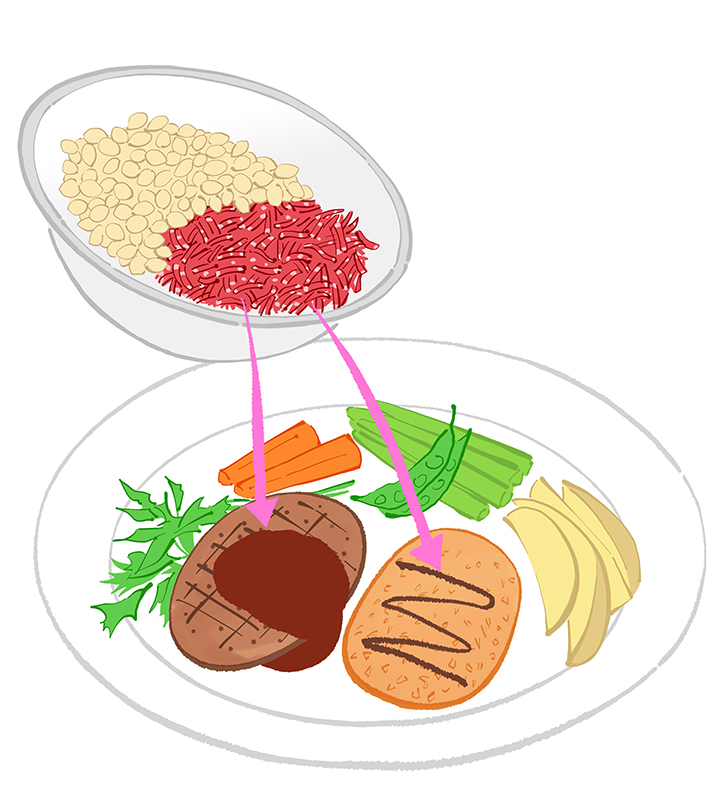 作品No.w263 ハンバーグ、コロッケのひき肉に大豆を混ぜる,イラスト