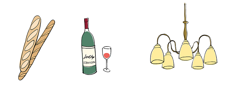 カジュアルなタッチの中でも、人物以外、小物、食べ物、アイテム系のイラストをまとめたギャラリーです。